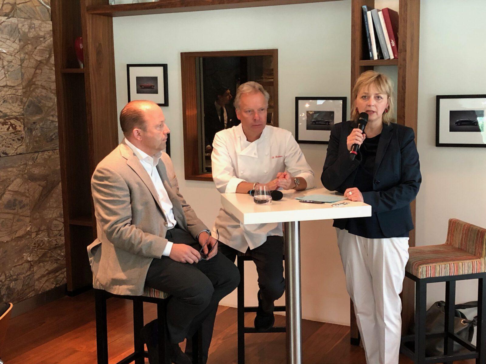 „Deutsche Gastronomie – fit für die Zukunft?“ fragte Gabriele Heins beim 4. Chef´s Talk in den Räumen des EssZimmer by Bobby Bräuer in der BMW Welt München. Es wurde nicht um den heißen Brei herumgeredet – es ging ans Eingemachte: Die 2-Sterneköche Dirk Luther („Meierei“ im Vitalhotel Alter Meierhof, Glücksburg) und Bobby Bräuer („EssZimmer by Bobby Bräuer“ in der BMW-Welt) sprachen ganz offen über die Veränderungen der Branche.