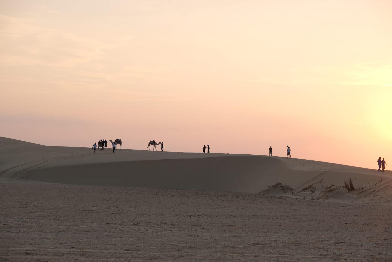 Aber zurück nach Nefta und zurück in die Sandwüste. Auf dem Weg dorthin kreuzen Kamele die Straße, die teilweise vom Sand verweht ist. Von den Dünen neben dem Star Wars Village hat man einen tollen Blick auf Start und Ziel, und besonders schön ist es am Nachmittag, wenn die Sonne langsam untergeht und die Wüste in ein sanftes warmes Licht badet.